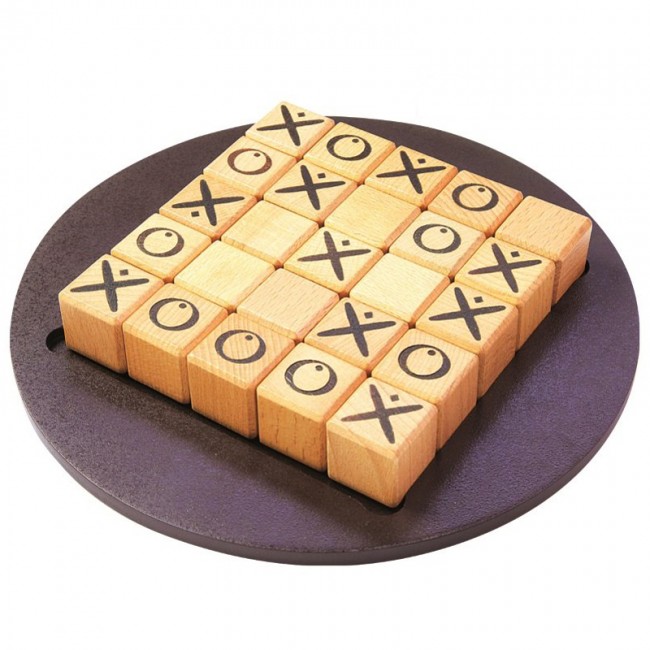 Kako igramo? Igralca (oziroma pri igri za štiri par igralcev) izbereta svoj simbol, torej križec ali krogec. Iz kock s simboli je za zmago treba oblikovati vrsto petih enakih simbolov – navpično, vodoravno ali po diagonali. Igralec, ki je na vrsti, vzame s plošče kocko (brez simbola, s križcem ali krožcem,), katere položaj mu ni všeč. Nato jo s svojim simbolom zgoraj postavi nazaj v vrstico, s tem, da jo mora vstaviti ob robu z ene ali druge strani. To pa seveda pomeni, da se vse druge kocke v vrstici zamaknejo.