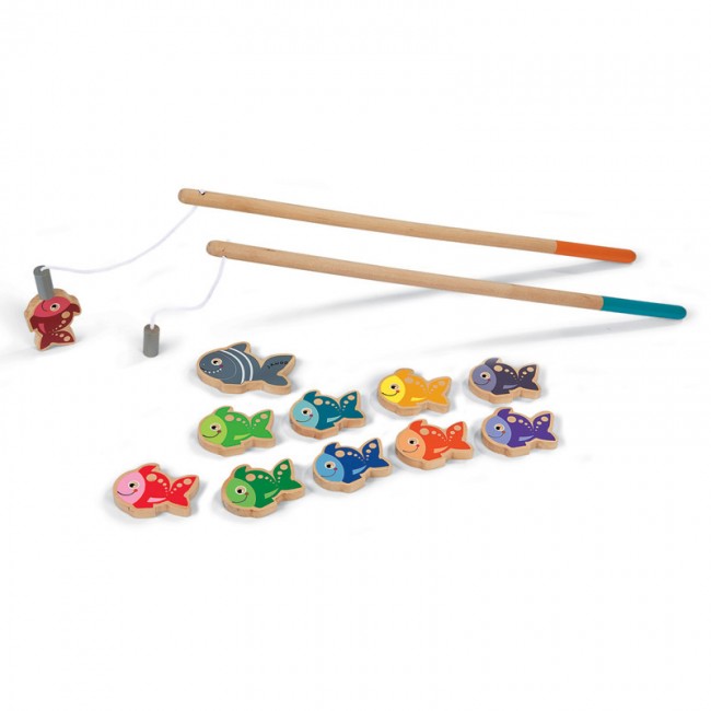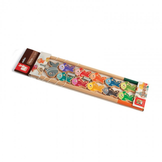 Svetlo, barvito in dobro poznano igro Ribolov sestavlja 11 lesenih ribic, katere lahko ujamete z uporabo dveh magnetnih ribiških palic.