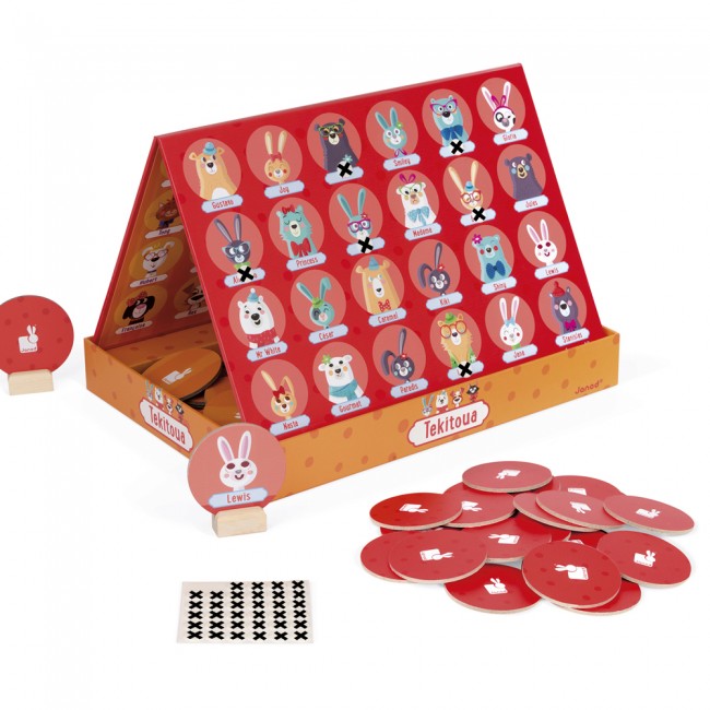 Postavljajte premišljena vprašanja ter odkrijte in s seznama eliminirajte eno žival za drugo, za označevanje pa uporabite odstranljive nalepke. Prvi igralec, ki identificira žival nasprotnika je zmagovalec.